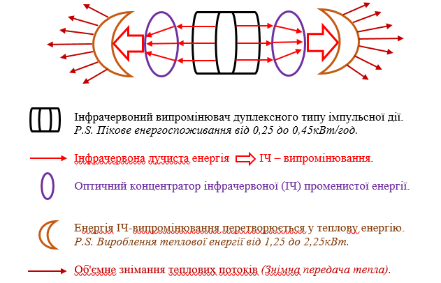 на створення ІЧ променистої енергії та її перетворення на теплову енергію